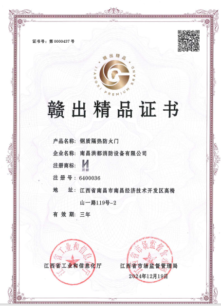 喜报丨洪都消防钢质隔热防火门荣获“赣出精品”权威认证 发布时间:2025年4月21日 浏览次数:286次 |